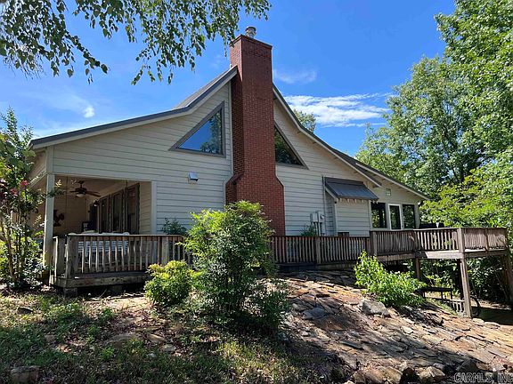 Gorgeous home on three acres, located ¼ mile from the White River boat dock near Mountain View, Arkansas. Enjoy your space and privacy in this move in ready property with 3 bedrooms, 3 baths, and 2260 feet of living space. Spacious living room with beautiful, stacked rock, fireplace, a wall of windows, and amazing wood trim/doors throughout the house. An all wood, vaulted, kitchen has custom wood cabinets, a brick fireplace, Travertine back splash, granite countertops, stainless steel appliances including double ovens, and a large granite table that will convey, along with bar stools. There is a loft style bedroom with additional storage, and a full bath upstairs. Two bedrooms are situated downstairs including the master bedroom suite, with a large walk thru closet, and conveniently located laundry room. The master bath has a walk-in shower and large soaking tub. Be drawn in from all sides with beautiful landscaping, mature trees, and a koi pond. There are so many places to relax, enjoy the outdoors, and entertain, with covered front and back porches and a screened outdoor kitchen with side deck. A detached, two car, garage is connected to the house via a breezeway