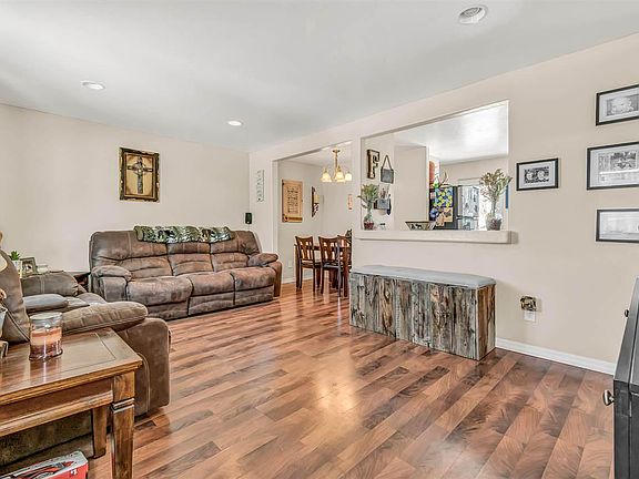 Located on a quiet street, this ranch home with a full basement offers two spacious living areas set up perfectly for entertaining on the main floor and relaxing in the basements living room. Pergo wood flooring extends throughout the main floor creating a clean look. An entertainment counter into the kitchen adds a bonus eating space aside the dining room, and stainless steel appliances are an added bonus. Two bright bedrooms and the homes full bathroom round out the main floor. Downstairs, youll find a cozy family room and the home's expansive master bedroom as well as the laundry room. Outside, the large fenced lot offers a multitude of possibilities, and the stucco siding and metal roof make this home low-maintenance.