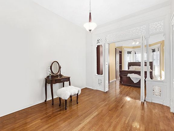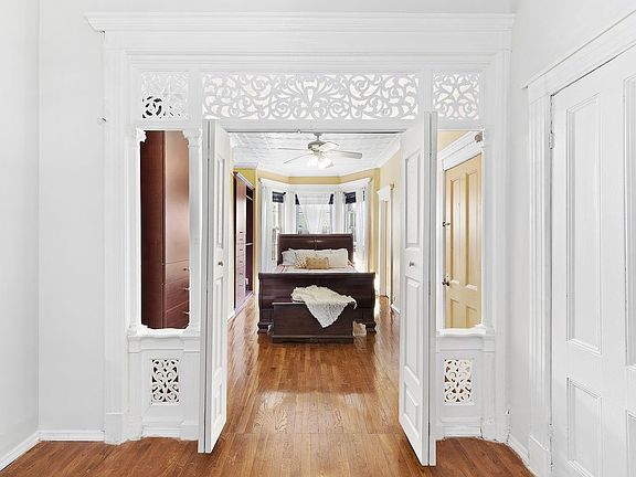 Brownstone details in Bushwick! This lovely 2 family home is located on a quiet and friendly block right off Wilson Ave, close to the L train. Configured as a 3.5 bedroom, 2 bath garden/parlor duplex plus a full basement with high ceilings and a top floor unit with 2.5 bedrooms and a full bath. In great condition throughout and brimming with detail including detailed woodwork, pristine tin ceilings, decorative fireplace mantles, and pocket doors. Add your own personal touches to make this very well maintained home yours!
