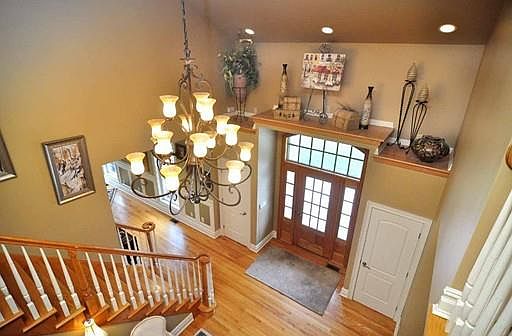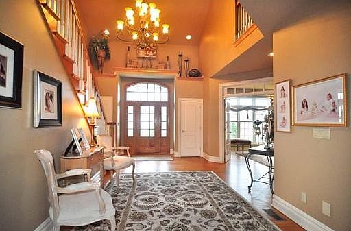 Talk about curb appeal!...this 10 years young beauty is perfection! The TRUE open floor plan is perfect for entertaining and the kitchen with granite counters & backsplash, stainless, double oven, and cupboards galore will be the envy of your friends. The light filled family room offers access to a maintenance free screened patio with a 'StampCrete' floor and access to the outdoor patio and a serene view of the trees and large rear yard. Architectural details include: wainscoting, 6" moldings, french doors, transom windows, coffered ceilings, recessed lighting, designer wall finishes and granite throughout. You can enjoy some peace in the spacious master suite where you can snuggle up in a corner and read a book, or luxuriate in the jetted tub and glorious walk in shower. When the relatives come to visit, the 4th bedroom is a perfect guest, in-law, or teen suite. For your convenience, there is a first floor laundry and the chandelier lift allows the fixture to be lowered for cleaning.