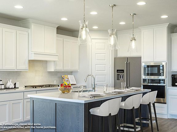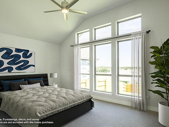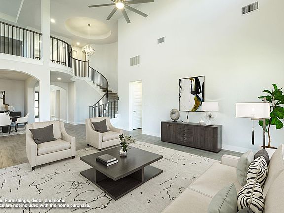 READY FOR MOVE-IN! Home office with French doors set at two-story entry. Formal dining room opens to curved staircase. Kitchen and morning area open to two-story family room. Kitchen features generous island with built-in seating space and 5-burner gas cooktop. Family room features wall of windows. Primary bedroom features 12-foot ceiling. Primary bath includes dual vanity, freestanding tub, separate glass-enclosed shower and oversized walk-in closet with access to utility room. A second bedroom is downstairs. A game room, media room and secondary bedrooms are upstairs. Extended covered backyard patio. Mud room off three-car garage.