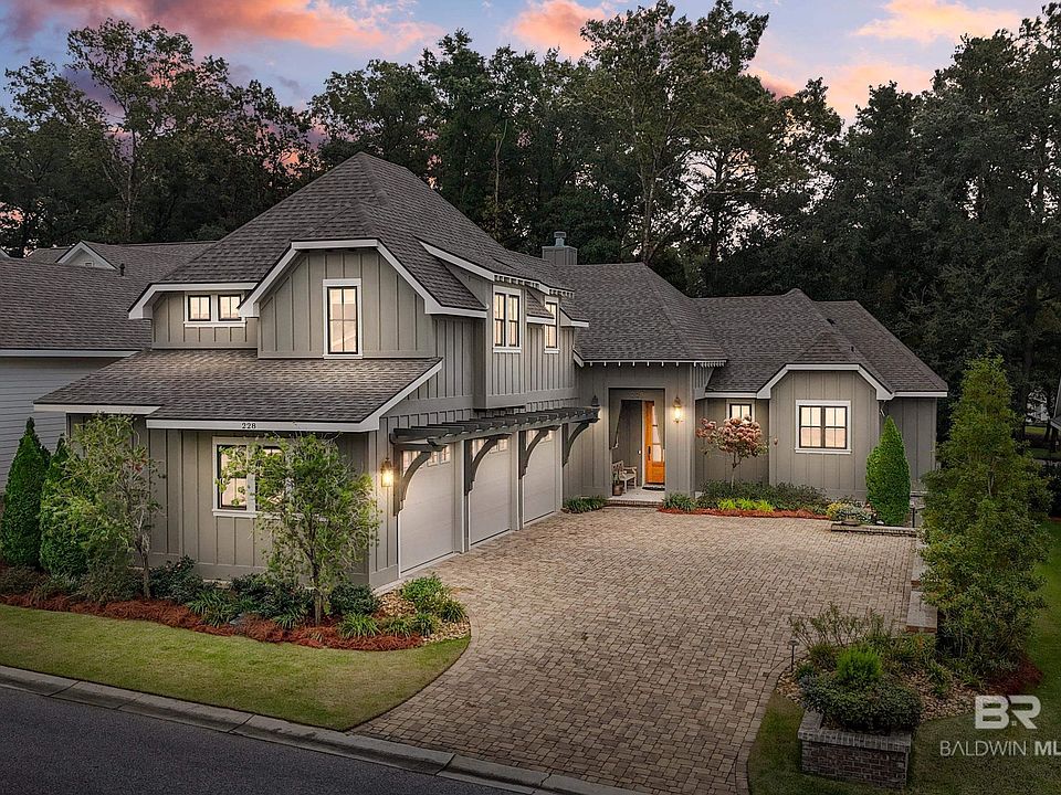 Relaxed elegance in the Colony at the Grand in Fairhope! 228 Cuban Lily Drive winks & attention is stated. She's sophisticated but not stuffy, she's comfort- equipped for a party at a moment's notice, she's already planning next years' vacation & filed her taxes- she's the smart choice. Welcomed by a brick paver driveway leading up to the three-car garage & custom millwork upon entry! Ten foot ceilings, Tuscan Oak wood floors, shiplap feature wall with wood burning fireplace. A sophisticated green Quartz kitchen island greets you & is ready for soirees at any moment. The kitchen is an entertainer's dream with expansive countertop space, Thermador gas range & refrigerator, wet bar with wine cooler, Bosch dishwasher & ample cabinetry. A custom expanded dining room area, which once housed a baby grand is positioned right off the kitchen & screened porch! First floor master suite includes a 14 x 7 walk-in closet that opens directly into the laundry room. Dual vanities, tiled shower, soaking tub, & private water closet. Secondary downstairs bedroom en suite with double doors opens onto the screened porch. Powder half bath with Toto Washlet bidet seat & custom mud bench offers more storage organization off the garage. Upstairs are two additional bedrooms, bathroom, built in closets and bonus living space! Cozy fireside gatherings of hot cocoa & s'mores are easy on the screened in back porch with an ample 445 square feet. Lush landscaping & green Arbor wall offers serenity & privacy- this home is encapsulated by nature & backyard enclosed with black iron fencing. This Gold Fortified home was built in 2021, comes equipped with a Briggs Stratton whole house Generator, spray foam insulated, irrigation system- including the planters, 3 car garage has Ninja epoxy floor, AC Mini Split, utility sink, 400 amp Tesla charger. Lennox 20 Seer HVAC & dehumidifier. Lakewood Club Membership with zero entry pool, slide, lazy river, & splash-pad, Tennis, Pickle-ball, Spa, Lake & More! Buy