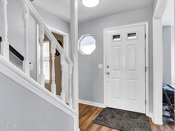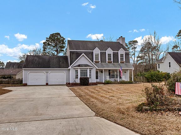 LOCATION, LOCATION, LOCATION. This updated two-story home is in Wendover North. Wendover North is in the Middle Sound area with easy quick access to Wrightsville Beach, Porter Neck, I-440 bypass and I-40 to Raleigh. When you drive up you will see the oversize .42-acre lot, plenty of extra parking in the driveway for a boat on trailer and or RV as well as a 2-car garage. This home has a rocking chair front porch as well. On the first level is laminate flooring, a new kitchen with custom cabinets, granite, stainless steel appliances, counter dept refrigerator, bar area with under counter refrigerator and large hall pantry. The bay window dining in the breakfast area and in office/dining room with built ins for storage. New half bath for guests on ground level. Spacious living room with fireplace and sliding glass door onto the screen porch and grill deck, perfect for entertainment. Upstairs is the primary suite, walk in closet and private bath. Two guest rooms with updated tiled hall bath. An oversize laundry room with washer, dryer and folding counter is on this level for convenience. Included is a storage shed and play set in the backyard. This home is situated on a cul-de-sac street.