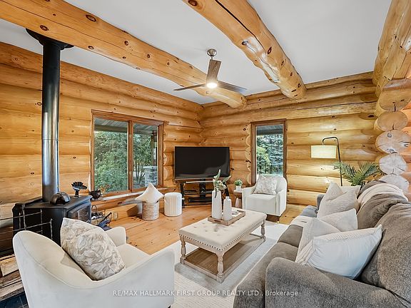 Homes like this don't come up often, and when they do, they are worth seeing. Welcome to 228 Dingman Road, a one-of-a-kind oasis nestled in the stunning hills of Northumberland.This expansive 3,000+ square foot home sits on over 38 acres and blends nature with modern living. With a log exterior, hobby farm features, and thoughtful updates throughout including a newly built 32 x 44 detached 3-car garage, this property is the perfect mix of rustic charm and modern convenience. Step inside to a beautiful open-concept main floor. The living and dining room stretch from the front of the home to the back, where an enclosed sunroom invites you to unwind. Hardwood floors and exposed log walls create a warm, inviting atmosphere, while the fireplace keeps the space cozy for the colder months. The freshly renovated kitchen features heated floors, a built-in wine fridge, pot filler, and quartz counters. A large laundry and mudroom combination along with a powder room make this level incredibly functional. Upstairs you will find three spacious bedrooms, including a primary suite with a walk-in closet and ensuite bath. The highlight of this floor is the walk-out deck that overlooks the property and beyond, offering breathtaking views to start every morning. The lower level includes a large rec room, a fourth bedroom, a sauna, and another full bathroom, making the basement as practical as it is inviting. Above the second floor, a spacious loft provides even more flexibility, whether for storage, a creative studio, or a private retreat. Outdoors, the charm continues. A welcoming front porch greets you, while the property offers a black walnut orchard, chicken coop, gardens, and newly cleared walking trails through your own personal forest. No need to keep dreaming about your ideal country retreat when 228 Dingman Road can be your reality.
