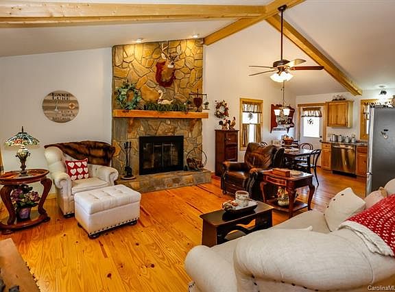 You'll love the bright and airy open floor plan of this Riverbend 2 bedroom, 2 bath log home with wood burning fireplace, full length, covered porch and wonderful winter views! This very cozy log cabin enjoys the privacy and security of Riverbend at Lake Lure and offering private lakes and over a mile of frontage on the Broad River. Come enjoy swimming, fishing, boating and much more! Whether you're looking for an affordable year round home or a vacation home, be sure to see this gem! Comes with all new appliances.