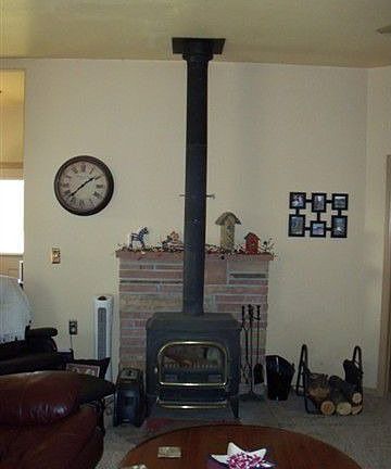 Enjoy this beautiful cozy two bedroom home with a large 5 piece bath that includes an antique claw foot tub with marble floor tile! Great for entertaining with a huge patio deck. The front porch and entry has custom flagstone. Breakfast bar and counters have granite tile. Wood burning stove with rock accents. Large master walk in closet with built in shelving. New lighting throughout home with remote controls in the bedrooms and living room. Security lighting, washer, dryer and refrigerator included. Oversized two car garage wired with 220v, includes opener and work bench. Front and back yards are fenced. Energy efficient windows in the bedrooms, living room and bathroom. Extra parking on the side of the garage for toys and vehicles.