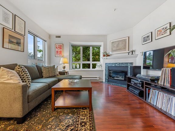 WHAT A CHARMER! LOVELY CORNER HOME RIGHT OFF MAIN ST, WITH TWO BALCONIES + A "REAL" DEN! THE SUITE - incredible use of space, can easily function as a two bedroom. Corner living room with window seat + gas fireplace. Separate dining area. Nice neutral kitchen + bathroom. In suite storage/laundry room. Great separation between primary bedroom & den (currently used as an office/library, would make a great kid's/guest bedroom). TWO covered balconies. Pretty front outlook onto tree lined street. THE BUILDING - Deva - a fully rainscreened, intimate community of just 17 homes in stellar location. Traffic quietened block just behind the street plaza at 14th+Main (next to JJ Bean, you know the one!). Cafes/restaurants/breweries galore. Walk/bike score 94. 5 mins walk to future skytrain station.
