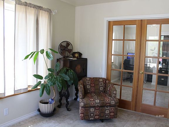 The tiled entry opens up into the formal living room. Just off of the formal living room is the first bedroom with french doors and tile flooring. Across the hall is the great room which includes the kitchen, dining and family room. The large living area features high ceilings and a cozy fireplace with a wood burning stove for the coming winter. Spacious kitchen with custom granite countertops, new gas range with convection oven and custom cabinetry with pull out shelves in the island. Large walk-in pantry. The guest bathroom has an updated vanity top and sink. The large master bedroom has vaulted ceilings and a walk-in closet. The gorgeous master bathroom has an abundance of cabinet space, dual sink vanity, jetted tub and separate walk-in tiled shower with glass wall enclosure. Indoor laundry room with laundry chute. Rear covered patio. Mountain and valley views from the back patio. 3 Car Garage with 1/4 bathroom. New evaporative cooler on ground. Two 10'x12' metal storage sheds on concrete slabs. Automatic landscape sprinklers. R/V gate. Mature tree, lawn and rose bushes. Come and see!