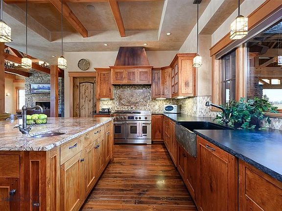 The allure of Montana's pristine fishing waters has enticed fly fishermen for decades to seek out the riffles, runs and pools where trout are abundant. Baker Springs is a 232-acre private fly-fishing community located in the center of Montana's premier trout waters and designed to provide its residents with an exceptional place to live while enjoying the most diverse fishing experience possible. This custom-built, one owner home is the perfect paradise for individuals passionate about fly fishing and the Montana lifestyle. An impressive stacked stone fireplace serves as the focal point of the great room with vaulted ceilings, natural beams and oaks floors creating a comfortable lodge feeling. Large open kitchen as well as more private spaces for quietude and fly-tying. 4 bedrooms and 5 bathrooms provide ample space for friends and family. Large flagstone patio with wood burning fireplace offers views of mountain ranges and a place to sit and share fishing stories--real and imagined.