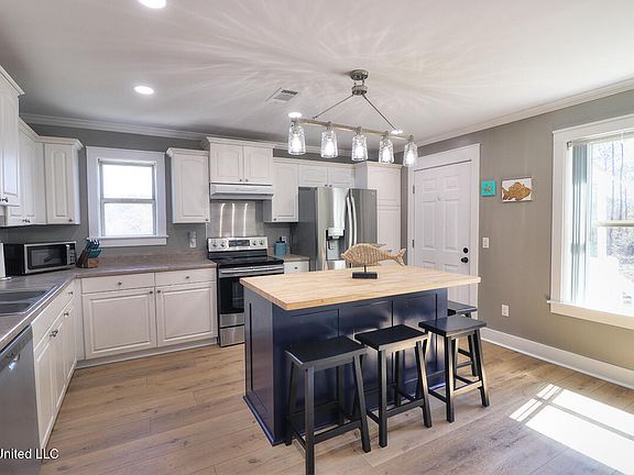 This freshly renovated home is the perfect vacation getaway on up to NINE ACRES of property! The interior features new sturdy flooring, butcher-block kitchen island, bathroom fixtures, cheery new paint colors, remodeled ceilings, and modern light fixtures throughout the home. Underneath the home offers plenty of covered parking, plus a newly rewired lighting system to help host your next evening crawfish boil.