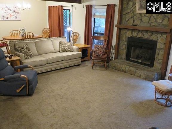 Fresh exterior paint. 1618 sq ft open split floor plan in cul de sac. New carpet in living room and hallway. Large open living room w/vaulted ceiling, beautiful masonry gas fireplace & wet bar. Eat in kitchen w/large dining area. Huge master bedroom w/bay window, his & her closets, extra large bath fitter walk in shower w/lifetime warranty. When you enter on the left is hall way with 2 spacious bedrooms & hall bath. Freshly painted covered deck overlooking your full fenced backyard.