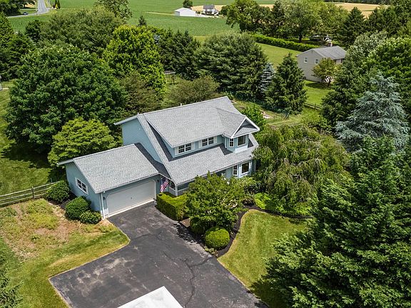 Nestled in the lovely Chester County countryside is a charming 2 story that features front  bay windows and a large front porch to recreate that country farmhouse look!  Enter to the  2- story foyer that is flanked by a living room, with bay window and recessed lights, and an  office with charming corner windows to flood the room with light. Large kitchen features  generous cabinets, with pantry, and a dining area with sliders to the large rear deck—the  perfect spot for those evening meals or morning cups of coffee as you marvel at your  amazing rear yard! Imagine the beauty of a yard that is lined with trees for privacy and  already features a fenced garden area with fruit trees, berry beds and an established critter  proof garden area ready to grow your vegetables and flowers. Imagine picking your own  pears, blueberries, blackberries and strawberries from the comfort of your back yard.    First floor laundry and powder room complete the first floor. Generous sized primary  bedroom will surely impress with a bay window that features a built in blanket chest, that   makes the perfect reading nook, as well as a walk in closet with organizers. Adjoining bath  and linen closet complete the space. Two additional bedrooms are served by the hall bath  while a dramatic loft space would be perfect for a reading area or computer nook. The  basement rec room would be the perfect spot for ping pong, gatherings or watching sports  on a big screen. Additional house features are brand new propane hot air heat with central  air, propane hot water heater, manifold plumbing system, pull down stairs to a floored attic  area,  automatic generator and a new roof in 2017-2018. Lovely level rear fenced yard, with  2 sheds (one with electric ),  is ready for sports, gardening of all kinds and is the perfect  spot for your fur kids to exercise.    Easy access to the shopping, medical offices and the  YMCA of Jennersville as well as the route 1 bypass for commuting makes this a great  location to call home!