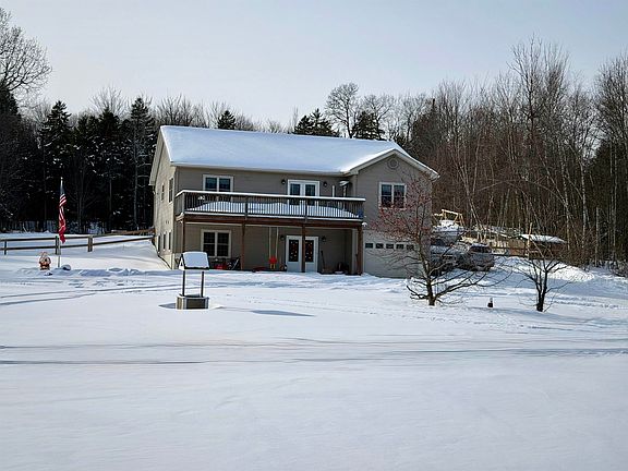 This well-built and beautiful home was constructed in 2008 and has been recently updated. Situated on 1.8 acres on a peaceful dead-end road, offering both privacy and comfort. The main living area boasts an open floor plan with a modern kitchen featuring new stainless steel appliances and sleek quartz countertops. The adjoining dining and living spaces are perfect for entertaining or family gatherings, with direct access to a spacious 30’x10’ deck. The main level includes two bedrooms, including the primary suite, and a second full bath with laundry. The lower level offers a versatile space with a third bedroom, an office or bonus room, a full bath, a second family area, and a playroom. Storage space available in the heated garage. Recent updates throughout the home include a mini-split heating & A/C system, whole house water filtration system, laminate flooring, updated light fixtures, fresh interior paint, and a generator. Outside, enjoy a mostly level yard with a serene pond, fenced dog yard, chicken coop, and relaxing hot tub. This home combines modern comforts with outdoor charm, making it a perfect retreat for both everyday living and entertaining. The mechanicals of the home include a propane boiler for baseboard and radiant heat, 200 amp electrical service with a generator transfer switch, a drilled well and private septic. Xfinity cable internet. 10 minutes to downtown Newport or 25 minutes to Jay Peak Resort. Well worth a look today!