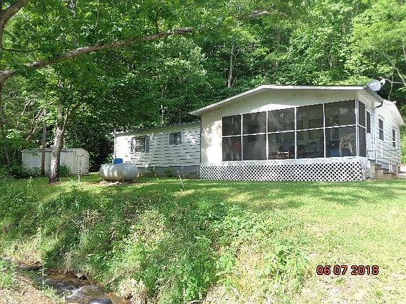 REDUCED AND SOLD AS IS !!Come to the mountains and sit by the flowing creek on your screened front porch. easy access property makes life easy to come and go when you want!!This 3 bedroom 2 bath double wide sits on a great lot , with a 1 car metal carport and storage building. Seller added screened back/ deck to sit and swing your cares away , along with the screened in front deck to hear the creek .. Lots of room inside with a wood stove and gas propane heat. Seller is selling home in " as is" condition so come and make it your own today with your special touches. Interior furnishings are negotiable. There are 2 parcel # for the property. 7527-55-4097=.45 ac. & 7527-55-3070=.07 for total of .52 acres. This is a great vacation home with the convenience to area activities.