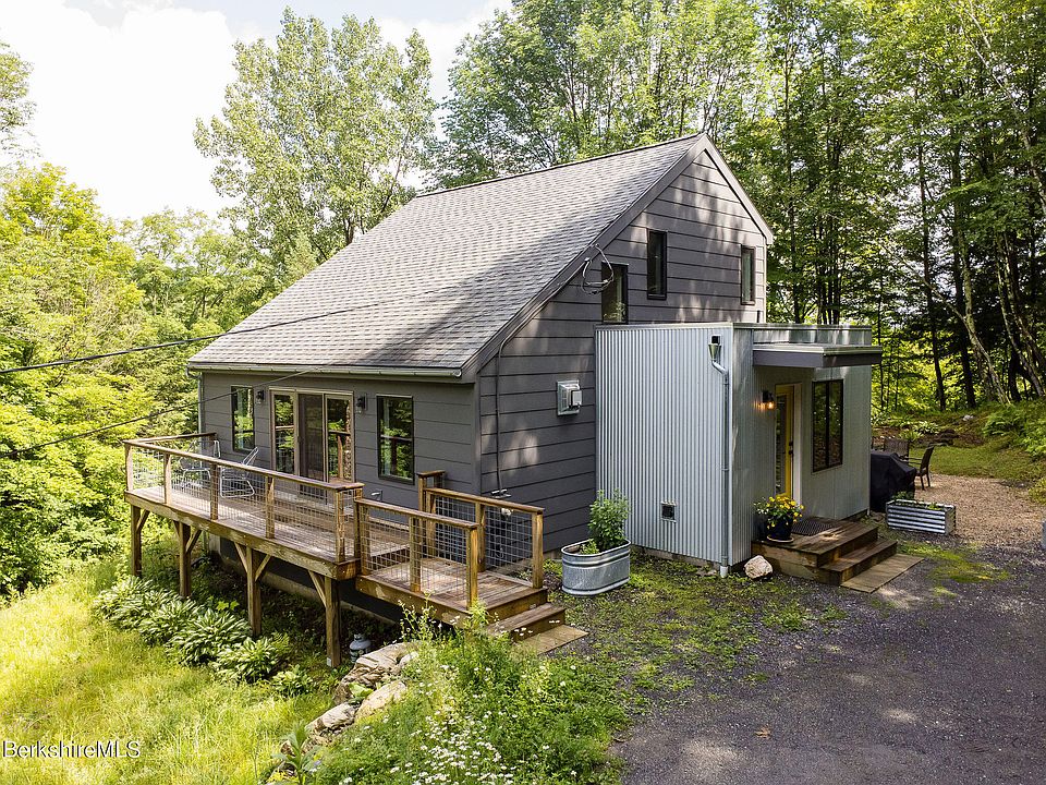 Substantially renovated in 2019/2020, it features a sexy mudroom addition with half bath and laundry, stylish and fun kitchen and bathrooms, bright and airy living/dining area with custom built-ins and a Mendota propane fireplace, wide oak floors custom-milled in Vermont, cement-board siding, Anderson windows, front deck, and more. Perched on the side of Tom Ball Mountain, and accessed by a steep driveway, this magical natural setting provides complete privacy and seasonal views to Butternut. Square footage includes 400 s.f. finished lower level. Realtor owned.