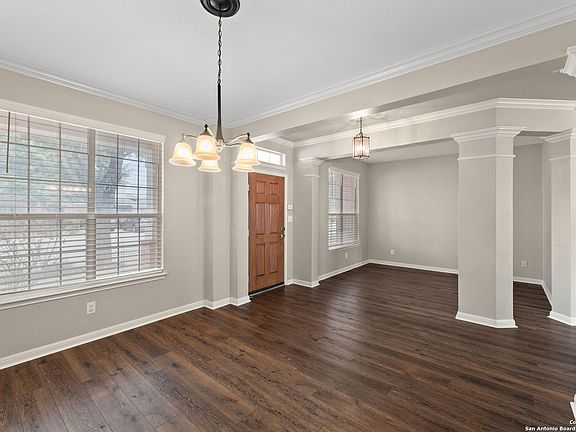 This beautifully designed David Weekly home is situated on a corner lot in one of Cibolo's most sought after neighborhoods. Settle in and relax in this move in ready, spacious open floor plan. You'll appreciate the modern finishes and the recent upgrades. The light, airy kitchen boasts several brand new appliances, new tile backsplash, farmhouse sink, breakfast bar, pantry, and a refrigerator. Enjoy casual dining in the breakfast nook, a quick snack at the breakfast bar, or a special meal in the formal dining room. Gather the gang for game night, TV, or any favorite fun activities in the large family room anchored by a cozy fireplace. Downstairs you'll also enjoy a formal living room when you need a more luxurious setting, and the comfortable master suite and deluxe bath. Up the stairs you'll find three additional generous bedrooms, and a separate work station, storage, and other built-ins at the top of the stairs. There is plenty of storage in the walk-in attic, a generous fenced yard, and a lovely covered patio to enjoy outdoor living as well. Great home, great price, come make it yours today.
