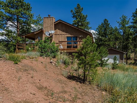 Fabulous private mountain cabin on 5 acres! Excellent mountain views! Only 13 Miles west of Sante Fe on Hwy 67! Easy commute to work. 3 bedroom, 2 bathroom (F,T), Ranch style with finished walk out basement & drive through 1 car garage & 2 storage sheds! Vaulted living room with wood stove, covered front porch, great 2nd home or primary residence! Excellent value - see it now! Give our showing team a call we show homes 7 days a week! This property may qualify for Seller Financing (Vendee).