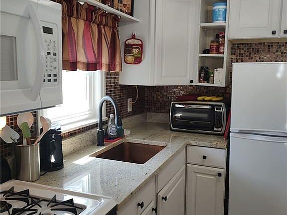 Pretty, Updated Cottage w/ beautiful curb appeal~ Newer Kitchen, Bath, central air, heating, roof, siding & roof. Lush yard boasts new white, vinyl fence, electric remote powered awning & shed. Basement with exterior Bilco doors. Perfect for 1st time home buyers & empty nesters.. Price Perfect!