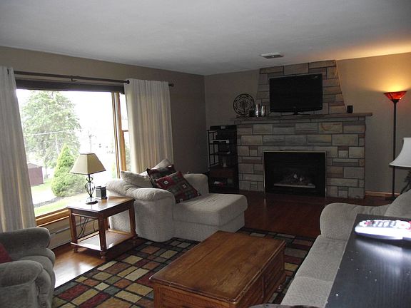 LOVELY LANDSCAPED RANCH-STYLE This 3 bedroom, 2 bath home offers a great view of the mountains, private backyard, stone fireplace in living room and wood flooring. Sunroom leading to outdoor area for barbeque's on those lazy summer days. Eat-in kitchen, attached carport, newer roof, storage and so much more! *propane heating in the garage and basement* MLS#WB-70481 $174,500 Davis Real Estate, Inc. 570-748-8550
