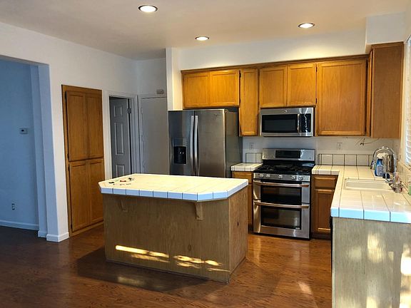 - Kitchen: Oven - Self Cleaning, Pantry, Countertop - Tile, Island, Exhaust Fan, Hood Over Range, Cooktop - Gas