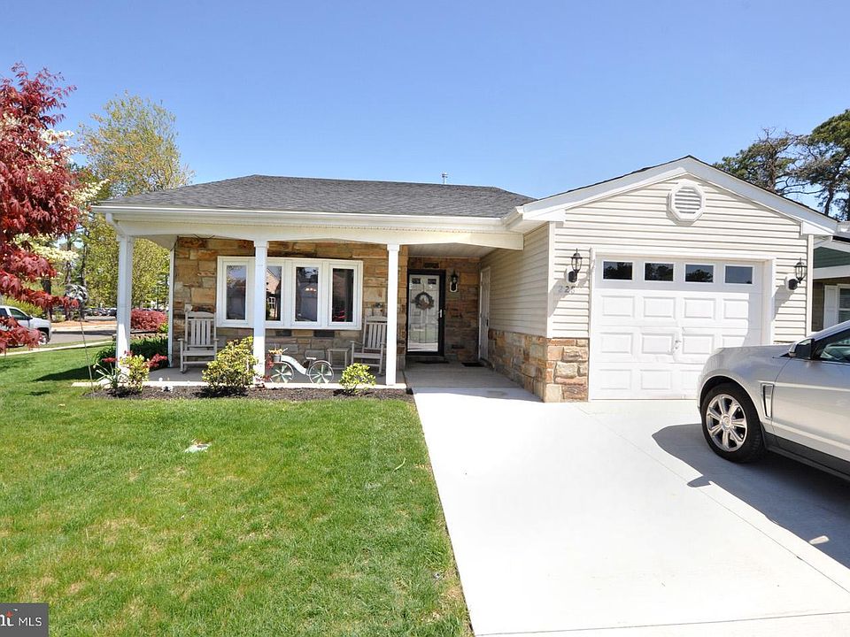 Contracts Signed! Welcome to 228 Huntington Dr! Just what you have been waiting for, move in condition! Rare Leisuretowne home with converted Electric to Gas, heat, hot water and gas cooking! Meticulously maintained and totally upgraded Haverford model 2 bedroom 2 bath home in the desirable 55+ Adult community in Southampton. This home is located on a corner lot, prime location, across the street from Laurel Hall, one of 2 clubhouses, that has a swimming pool, library and plenty activities to enjoy. As you enter from the lovely covered porch which has access to the garage, you will be greeted with a large living and dining area with natural light and beautiful luxury vinyl plank flooring. There are top down bottom up pleated shades with a large bay window as well. Beyond the foyer/hall, straight ahead, is the laundry area with newer washer & dryer, linen closet and upgraded kitchen. It features ample cabinetry, SS appliances, granite countertops, pantry and breakfast area. Off the kitchen is the fabulous all season sunroom with ceiling fan, large storage room and access to the concrete patio. Perfect for grilling and space for patio set. Just off the hall, adjacent to the kitchen, you'll find the primary upgraded bathroom with beautiful tile heated flooring and shower surround. That's right, no more cold floors upon getting out of the shower/tub! Very nice feature! The master bedroom on one side is very large and has a walkin closet and a bathroom with standup shower. On the other side is the second (nice size) bedroom with large closet. Don't wait to tour this lovely home! Make your appointment today!