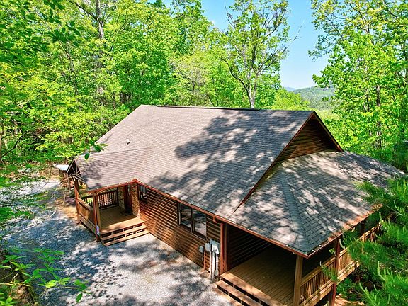 Price Reduced -Exquisite Cabin with Mountain Views in Indian Ridge Estates on 1.5 acres. This fully furnished cabin is perfect for short term rental or full time occupancy. All paved roads to the cabin with circular driveway and parking for multiple vehicles. This cabin has 4 spacious bedrooms, 3 baths and multiple living/entertainment areas as well as 3 fireplaces! The volume ceilings and large windows capture the majestic views and bring in ample natural light. Beautiful woodwork and detail in this cabin including acacia wood floors on all levels. The great room has a stone gas fireplace and is inviting, perfect for gatherings. The dining room area off the kitchen accommodates a large family/group. The kitchen has granite countertops, stainless steel appliances, recessed lighting and plenty of cabinet/counter space. On the main level you will also find 3 large bedrooms. The primary bedroom en-suite (17X15) features private balcony with views, walk in closet, and a bathroom which includes custom cabinets, live edge top, dual custom sinks and more! The other 2 bedrooms and bathroom are located on the other side of the cabin for additional privacy. There is a also a loft space. The terrace level includes an incredible game room and living room with a stone 2 sided fireplace. There is also a full bathroom and additional bedroom and flex space on this level. Walk out to enjoy your hot tub on your covered porch. This cabin has several covered and uncovered porches to enjoy the beautiful views it surrounds. The large decks/porches on the main level includes a stone wood burning fireplace. There is plenty of area for outside cooking,eating, relaxing etc This cabin spares no detail and is a great opportunity to own in the mountains.