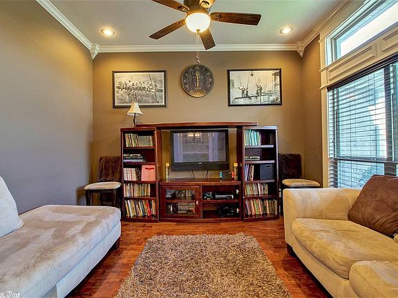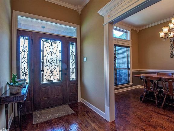 Immaculate home in cul de sac. Home has bonus room & sep dining room w/ gorgeous wood floors. Living room is open to the eatin kitchen, & features a breakfast bar, pantry, custom cabinets, stainless steel appliances, & elaborate crown molding. Living room has gorgeous hardwoods, built ins, gas fp, &ch doors going out to the covered patio. Split floorplan. Master ensuite has double vanity, jacuzzi, & HUGE shower w/ dbl shower heads, walk in closet, built in safe. New above ground salt water pool & stg bldg.