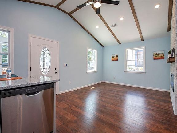 Across from M. R. Hollis Innovation Academy and JF Kennedy Park is this new build, from the foundation up, 3/2 ranch with fenced in back yard provides 4 secure parking spots behind lockable privacy fence. Under the cover of your welcoming front porch, the front door opens to your new stainless and granite kitchen with breakfast bar area overlooking the living room with coffered ceilings and a fire place. The hall to the spacious ensuite master BR with trey ceiligs is flanked with laundry room 2 BR and 1 full BA. Engineered hardwoods throughout and custom paint. Front and back yard just outfitted with new sod grass.