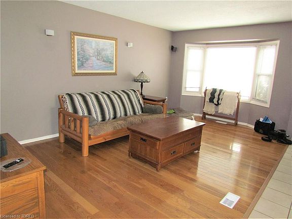Super cute home in great condition with hardwood floors in living room and bedrooms. Open concept main area with side door to attached garage/workshop. Good size 4pc bath, lots of closet and storage space. All appliances included, lots of space in the basement and lovely neutral colours. 42x14 workshop/garage, plus 2 storage sheds. Walking distance to schools. 5 minutes to 401