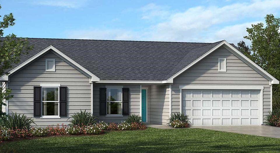 Energy Star Certified ranch-style home on just under half an acre features fiber cement siding & covered front porch. The 9’ ceiling height & open floor plan give this home a spacious feel. Luxury vinyl plank flooring throughout except for bedrooms. The kitchen showcases white cabinets, granite countertops, tile backsplash, & stainless-steel appliances. The primary suite boasts quartz countertops, 5-ft. shower with tile surround, & dual-sink vanity. The backyard patio is ideal for outdoor entertainment!