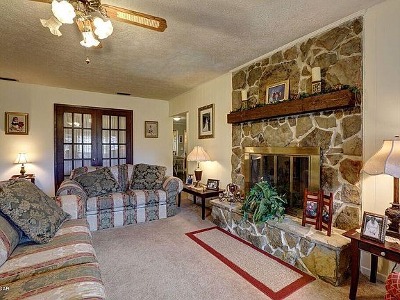 - Interior: Ceiling Beamed, Fireplace, Floor Tile, Floor WW Carpet, Window Treatment All, Shelving, Inside Storage