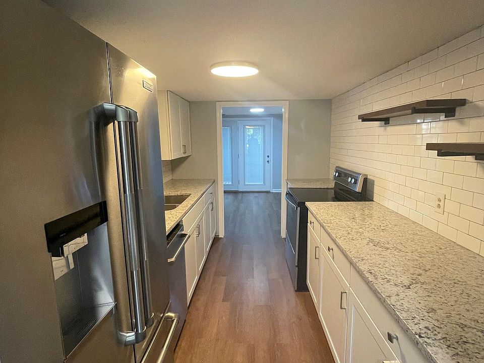 Fully renovated townhome located in a great location in Winston-Salem. This 3 Bedroom 2.5 Bathroom is located in a premium school district: Reagan High School, Meadowlark Middle School, and Meadowlark Elementary School, the last two located less than a mile away. With a beautifully renovated white kitchen area that offers stainless steel appliances and granite countertops which combine perfectly with the soothing gray color throughout the whole property. The first floor of this spacious townhome offers a dining area, kitchen, half bathroom, laundry room, storage room, a deck overlooking the woods, and ample open space with a fireplace, making this area an excellent place for entertaining. The second floor offers a spacious Master Bedroom with a full bathroom and two additional spacious rooms that share a full bathroom. This unit will not last. Please contact us to schedule a viewing today. The owner pays for water, trash recollection, tenant pays for power and any additional required services.