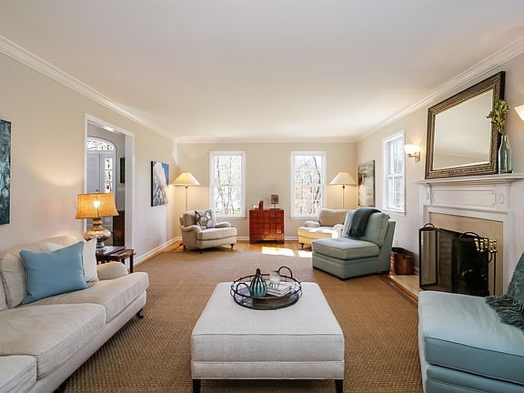 This classic center hall colonial boasting over 5,700 feet has an open floor plan with beautifully proportioned rooms. The gracious two story entry is highlighted by a circular staircase. The newly updated kitchen with breakfast nook features Carrera marble countertops, stainless steel appliances and gleaming hardwood floors. The spacious Living Room has high ceilings and a wood burning fireplace.The Office has three walls of windows and french doors offering natural light and privacy. The Family Room, off the kitchen, has a handsome floor to ceiling stone fireplace and cathedral ceilings. Upstairs has four bedrooms and three full baths. There is a separate in-law suite with its own set of stairs. The lower level has a large playroom, exercise room and full bath. This home has it all