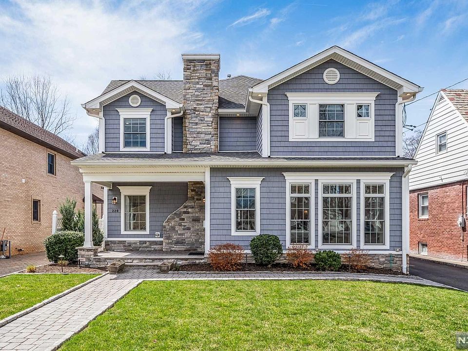 Gorgeous colonial in Hasbrouck Heights, completely rebuilt & expanded in 2018. Currently laid out as a 3 bedroom 2.5 bathroom with easy ability to convert to a 4 bedroom home. Quality craftsmanship is evident throughout the home with beautiful woodwork & moldings. 1st floor offers a welcoming foyer, large LR w. gas FP, home office w. a bonus nook, large formal DR w. coffered ceilings, & a gourmet kitchen w. large center island, quartz countertops, breakfast nook, & professional Jenn Air-air appliances. Huge pantry off kitchen. 1st floor bedroom makes a great guest room. Head upstairs to the truly luxurious primary suite with an amazing sitting room & 2 custom WICs. Luxurious primary bathroom suite. 2nd bedroom upstairs also offers a bonus nook. Laundry upstairs for your convenience & 2nd beautiful full bath. Fully finished basement. Great backyard w. covered porch. Beautiful landscaping & detached garage. Steps from The Boulevard with restaurants, shops, & transportation to NYC.