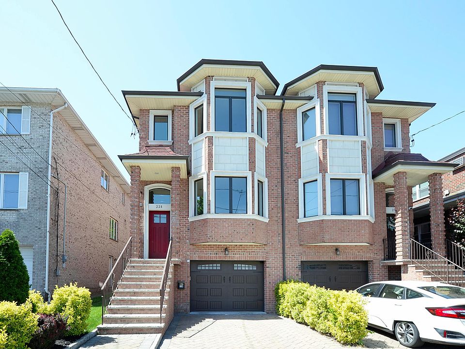 Welcome to your dream home! This newly renovated luxury townhouse offers approximately 2700 sqft of modern living space, featuring 3 BR, 2 full BA & 2 half BA. The home boasts open floor plan with designer finishes, high 9ft ceilings, and beautiful hardwood floors throughout. The main level includes spacious living room and cozy gas fireplace, modern eat-in kitchen with brand new stainless steel appliances, granite countertops, and built-in breakfast nook, large deck, and formal dining room. The upper level features primary bedroom with 13 ft ceilings, 3 closets, en suite bathroom with skylight, jacuzzi tub, double vanity, and stand up shower, two additional bedrooms with ample closet space, full bath, and laundry room. The ground level offers fully finished family room with half bath and entrance to private backyard, heated 1.5 car garage with Tesla charger. Additional features include Smart Thermostats, central AC, close to NYC transportation, restaurants, and shops