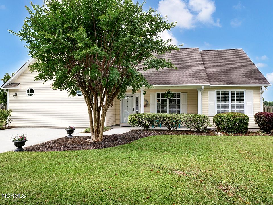 Move In Ready! No HOA, bring your boat- THIS IS a boaters Paradise with the proximity to Topsail Island and Beautiful Beaches Close to Wilmington, Shopping, Award winning Restaurants, Topsail Island and Quaint family owned businesses. This Split Floorplan offers spacious Living Areas, solid flooring throughout the home and a huge fenced in yard with established trees. New GE appliances include updated refrigerator, dishwasher, microwave, 2020 washer and dryer convey. As you enter the home there are vaulted ceilings in the dining area and the living room is to the left. The kitchen overlooks the 12 x 15 tiled Sunroom with walls of sliding windows and a ceiling fan. The large En Suite is to the left featuring a soaking tub, separate shower and large vanity. Lewis Rd leads to Sloop Point Marina and the Intracoastal Waterway! The large 6x18 covered front porch overlooks established landscaping and trees. The backyard features a curvy patio oasis, raised garden, 12 x 15 shed, palm tree, established tree border in the back and the feature tree is an Evergreen Japanese Blue Oak! New Trane heat pump with transferable warranty installed 8/22. This home has it all.