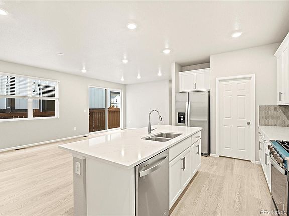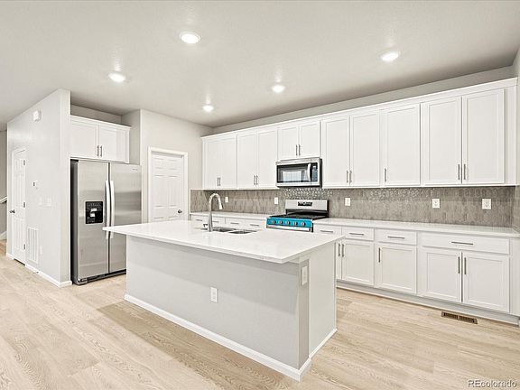 Popular home with thoughtful, spacious floor plan at Fickel Farms! Open Kitchen and Great Room design boasts upgraded white kitchen package, with stainless steel appliances. Gas Stove, Fridge, Dish Washer and Microwave included. Relax with morning coffee on the large, covered Patio and 6’ high privacy fence. Energy Efficient Features, Tech Package, Lighting package, Unfinished Basement and Two Car Garage standard. Enjoy game night with the family upstairs in the loft area. 3 Bedrooms, 2.5 Baths and several linen closets are included for storage. The Covered Front patio is sunny and charming with a picket fence opening to a Green Belt. Walk down Fickel Farm Trail to enjoy Pioneer Park, future pool and Clubhouse. Close to Old Town Berthoud!