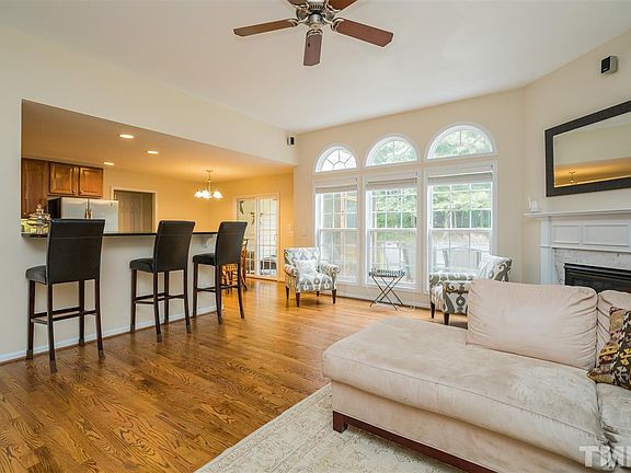 Bright, beautiful, updated, move-in ready transitional in Eagle Ridge Golf Community features the ideal open floor plan! Spacious master on main, Eat-in kitchen w/ granite, S/S appl., bar & break. nook opens to Fam Rm w/gas FP, sep. DR, office, screened-in porch, deck, plus two BR's, lg. bonus room & walk-in attic on 2nd fl. HW floors & beautifully landscaped w/private yard backing to woods. Lovely neighborhood w/ tennis, pool, golf (mem.) & play areas offers the ideal lifestyle min. to I-40 & DT Raleigh!