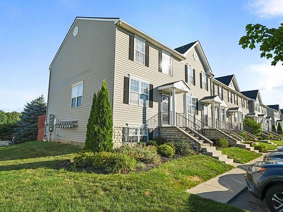 Welcome to this lovely condo, waiting for new owners! This end unit has a stellar location, backing to the pond and fountain, and steps away from Rosecrans Elementary school, with two dedicated parking spots right out front. On the first floor, you'll be welcomed by newer living room laminate flooring, a half bath, and an open concept living room/kitchen, with nice sized pantry. Upstairs provides two bedrooms (each with dedicated full bathrooms). in the lower level, cozy up by the gas fireplace and create your own separate living area (with a half bath and unfinished storage). Many updates, including roof ('17), AC ('19), carpet ('24), bathroom flooring ('23).