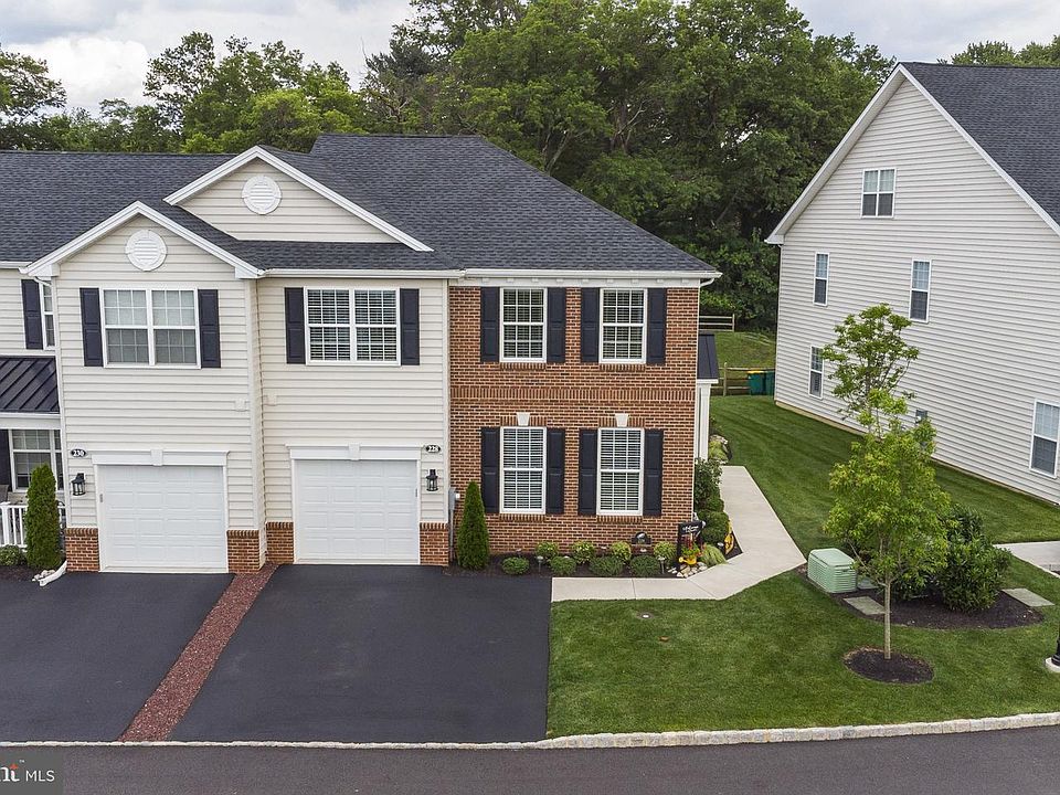 Welcome to 228 Mission Lane, Fallsington, Pa. Enjoy a wonderful new lifestyle in this elegant age qualified resort community with clubhouse, by McGrath Homes, in the historic Fallsington area. Located on the former site of St. Joseph the Worker Church and School. This beautiful Carriage Home at St. Joseph Court is the desirable end-unit, "The Raphael Model", that has plenty of upgrades and many details. This premium lot features a pond and fountains with front, side and rear upgraded landscaping. The side entry door, with keyless entry and Ring Doorbell security system, welcomes you with lots of windows and comfortably features a spacious living room, dining room and kitchen all in an open area. Neutral paint throughout the entire home and hardwood flooring throughout the first floor. The spacious living room has a stone gas fireplace with electric on the side, recessed lighting, ceiling fan, TV hookup with surround speakers built-in the wall, double crown molding and wainscoting. Enter into the dining room that has recessed lighting with decorative trim, double crown molding and wainscoting. The dining room opens up into the spacious, upgraded gourmet kitchen. There is a generous 10 foot center island that has plenty of room for seating, with electric, a beverage cooler and pendant lights. This beautiful kitchen features quartz countertops with waterfall edge, upgraded tile backsplash, upgraded self-closing cabinets, under cabinet lighting, recessed lighting, panel box window, a wall of pantry cabinets, ceiling beams, wainscoting, upgraded large kitchen sink and Kitchen Aid stainless steel appliances, including a slide-in gas range. Refrigerator is negotiable. The optional expanded patio off the kitchen is perfect for entertaining or relaxing. There is a outside gas line for a grill. The first floor master bedroom has a stately coffered ceiling with painted bead board, ceiling fan, double insulated walls, and walk-in closet. The master bath includes double vanity sinks and a 6 foot shower with upgraded tile, semi frameless shower doors, niche and seat. The first floor also includes a laundry room with wall cabinets and a counter, with electric, to conveniently fold and iron clothes. The staircase leading to the second floor has hardwood stairs with upgraded carpet runner and lighted wainscoting. The 2nd bedroom is being used as a home office has carpeting, bead board wall shelf with electric, closet and ceiling fan. The 3rd bedroom has carpeting, ceiling fan, double closets and TV wall outlet. The optional 19' x 11' bonus room is used as a bedroom but can easily be use as a family room or exercise room has recess lighting and wall to wall carpeting. The hall bathroom has tile flooring with upgraded vanity with drawers and a tub surround. Also included on the second floor is a large storage rooms. Other home upgrades include whole house surge protector, dimmer switches throughout, electrical outlet in closet under stairs and recessed lighting under front porch. Also, all contents of the home are negotiable. Included throughout most of the home 2-1/2" cordless faux wooden blinds. The garage is nicely equipped with storage cabinets, painted walls, epoxy custom floor by Garage Kings, upgraded garage opener, audio shelf for cable and other boxes with electric for streaming and hose hookup. The community clubhouse offers endless possibilities for leisure and recreation; gathering room for parties, fully equipped fitness center, sports lounge, card/game room, outdoor entertaining patio! Call today and start your new lifestyle!