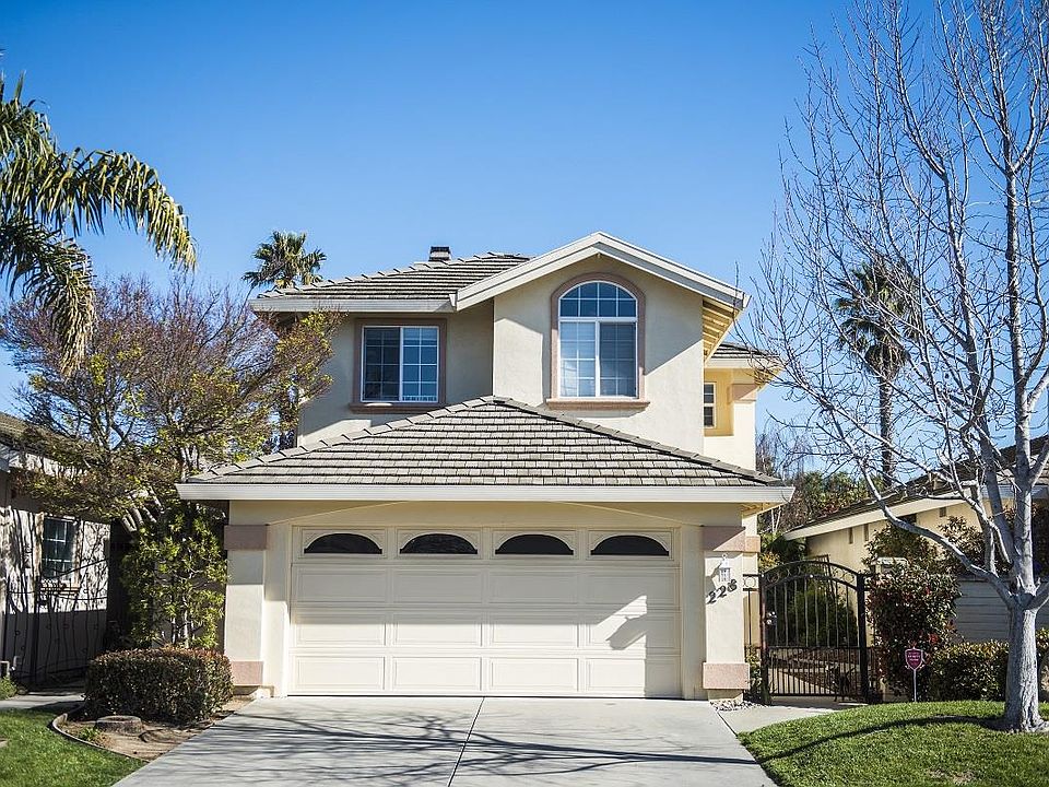 228 Montclair Lane is move-in ready and a beautiful three bedroom, two and a half bathroom home located in the gated Montclair neighborhood. This well-kept, low maintenance two story home has new interior paint with high ceilings in the living room. The kitchen has tiled counter-tops, a stainless steel oven and cook-top, and dining area with backyard access. The first floor also has a half bathroom and laundry area. All bedrooms are located on the second floor, including owner's suite with large closet and private bathroom as well as two additional bedrooms. Enjoy an upstairs hallway, open to below living spaces. Extra amenities include: gas fireplace, Pergo and carpet flooring throughout, cemented patio backyard, gated side-yard for additional privacy, two-car garage and inside laundry room. Enjoy your weekends exploring instead of doing yard work, this front yard is maintained by HOA. Centrally located with easy access to surrounding areas and freeways.