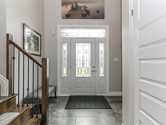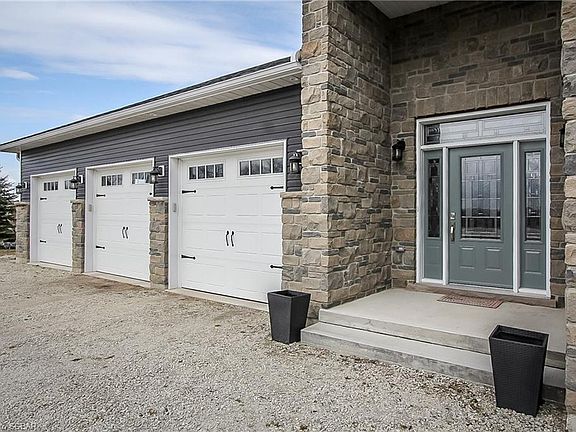 Beautifully finished custom built home with approx. 3550 sq.ft. of living space. Home has spacious foyer up to lovely open concept family room with floor to ceiling gas fireplace, beautiful kitchen and dining area with patio door to large deck and backyard. Main level also has 3 bedrooms, 4 pc. main bath and 5 pc. en suite and main floor laundry. Lower level has 2 additional bedrooms, 4 pc. bath and large open concept game room and rec room with wet bar and gas woodstove. Lower level also has utility room / furnace room with entrance up to fully insulated, heated 3 car garage. Includes many extras, engineered hardwood, granite countertops, central air, town water and garage doors 9 ft wide x 8 ft high.