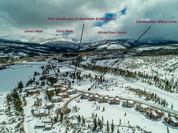 Escape to this charming mountain retreat in the Winter Park, CO Rocky Mountains. Beautifully maintained & fully furnished, 228 Mountain Willow Drive blends comfort & elegance featuring an open-concept floor plan perfect for gathering 12 + w/3 BD's upstairs including a primary suite, large laundry room, attached garage & 2 spacious entries. Making it the perfect sanctuary for seeking adventure & tranquility, enjoy a LOCATION on the free shuttle route to town & the Winter Park Resort, & year-round access to national forest trails, then relax by your cozy gas fireplace or apres-ski on the patio w/hot tub, beautiful aspens, lodgepole pines & evergreens for added privacy, & scenic mountain views! Situated on a .15 acre corner lot, this property provides room to expand your outdoor retreat.