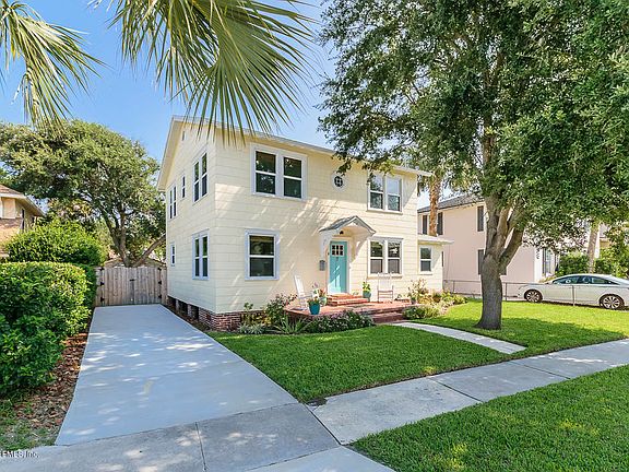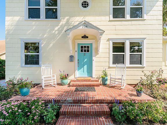 East of A1A - 8 houses from beach! Historic beach cottage restored to perfection. This renovated pool home has modern amenities without sacrificing historic charm including solid wood doors with glass knobs, oak & heart of pine floors, window casing, & restored original light fixtures. Home was gutted & all new everything installed including roof, windows, HVAC (2 units), electric wiring & box, plumbing & drains, & spray foam insulation. New Kitchen with Shaker style white cabinets (all wood), white marble counters, stainless appliances including drawer microwave, & farm house sink. Master bedroom is huge with two closets. New Master bath has white Carerra marble floors & clawfoot tub. New second bath is white marble. Backyard in-ground pool surrounded by butterfly garden paradise.