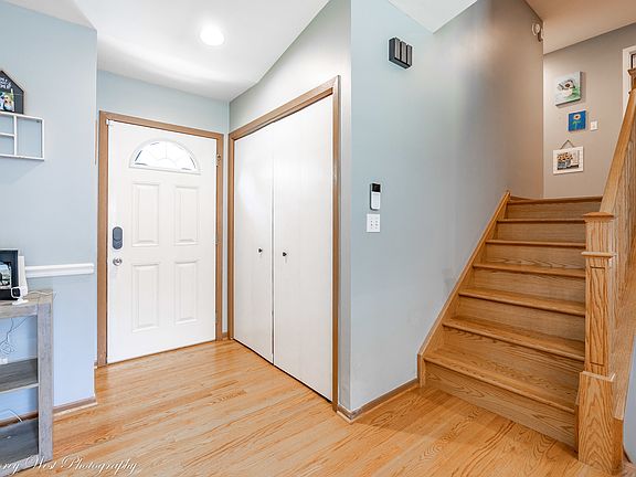WELCOME HOME to this move in ready home located in the highly sought after neighborhood of Woodland Acres. This home sits on a large corner lot in a cul de sac. Walk in to the vaulted living room and notice the beautiful hardwood floors, beautiful hardwood stair case and can lighting throughout the home. All custom blinds (self-lifting, no pull strings) The eat in kitchen features a breakfast bar. 2 nice size bedrooms upstairs with full bath. Master bedroom upstairs features large walk in closet and master bath. All bedrooms have custom racking in the closets for organized storage. Lower level is an English basement featuring a large family room, 1/2 bath, laundry and extra room that can be used as a bedroom, office, or rec room. Newer furnace and A/C in October 2019. Home has radon mitigation and whole house humidifier installed (as-is). Notice the very large concrete crawl space. As you walk out the sliding glass doors, enjoy the patio, mature trees throughout the property and fully fenced in back yard. The privacy fence features hurricane post's. Notice the beautiful fireplace and remote-controlled awning on the back that will make entertaining your guests very enjoyable. The concrete pad off the patio can be used as more entertaining space, basketball court, or a place to put your hot tub. Enjoy parking in the 2 car heated garage with new epoxy flooring. This home has Fiber High Speed internet and is also Direct TV ready. All appliances are included. Just bring your family and move right in.