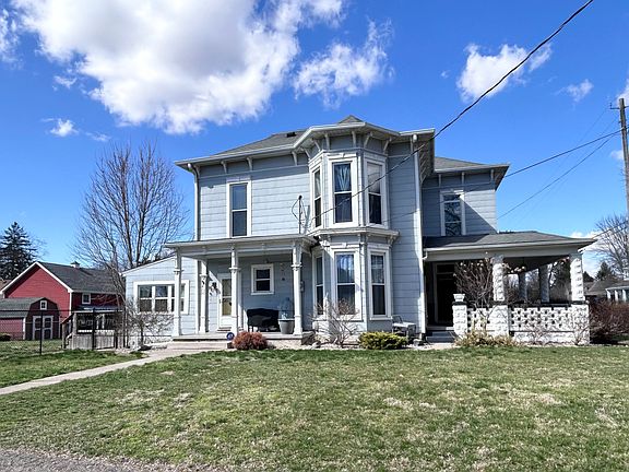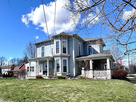 Discover your dream home in the heart of Knightstown!! This beautifully updated 4-5 bedroom, 2 bath home has it all. It offers the perfect blend of history, charm, and convenience. The large kitchen has an abundance of cabinets, counter space, and all appliances are included. Beautiful, refinished hardwood floors flow throughout the home. Awesome bay/bow oversized windows provide so much light. Both bathrooms have been completely remodeled and are stunning! The spacious fenced yard and rear deck are perfect for entertaining. There's also a large area behind garage that is used for a garden. This covered front porch is made for relaxing! New high efficiency furnace, AC, programmable thermostat, and water heater 11/2024. Large, dry basement offers so much storage room. This home has been well maintained and cared for. This is a must see!! Conveniently located within walking distance to shopping, restaurants, school, etc. and minutes to I-70. Don't miss out on this amazing home!