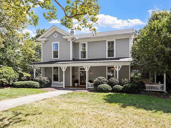 Experience the joy of an extensively renovated historical home that blends modern comfort and style with touches of the past. The Simmons-Allen House, in Wake Forest's historic district, was built in 1883 with subsequent addition in the early 1900s and is listed on the National Register of Historic Places. It's a piece of history reimagined for modern living. 2018, the current owners began an intense renovation project that included a full kitchen remodel, creation of a family room with gas fireplace, primary bath addition, a bedroom ensuite remodel, HVAC updates, major electrical improvements including new main/sub panels/creating underground power line to the home/new outlets and switches, , plumbing updates including tankless water heater, foundation repairs, new 1st floor subfloor and engineered hardwood flooring, detached garage improvements, new driveway/parking, side entrance w/brick stoop, mud room, custom built-ins, and a remarkable array of cosmetic improvements including new light fixtures throughout. For your outdoor enjoyment, a fully fenced in backyard provides privacy, a large deck, patio, and fire pit. The result of the owner's hard work is a move-in ready and stress-free property where every detail has been addressed so you can enjoy the beauty of a historic home without the worry of major projects. You'll fall in love with its location on Wake Forest's most picturesque street and the convenience of being within walking distance to downtown Wake Forest.