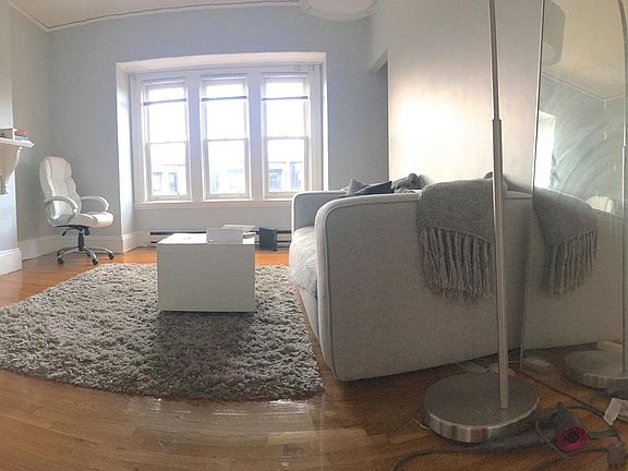 Sunny top floor front facing Newbury St. 1 bed. In-unit washer/dryer. New remote controlled Air Conditioning split system. Hardwood Floors. Renovated granite kitchen. Views of Newbury St. and skyline. Great windows and light. Spacious bedroom. Great closet space including large Walk-in Closet. Available July 1. First, security, & half fee. Cats allowed. No smoking.