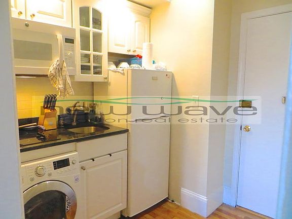 1br, hardwood floors, newly renovated kitchen, cooktop with microwave/convection oven, washer and dryer combo in unit, tile bath, all electric by lessee
