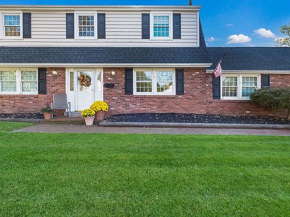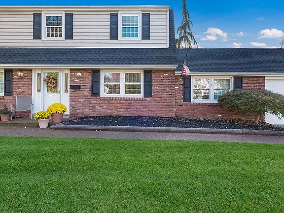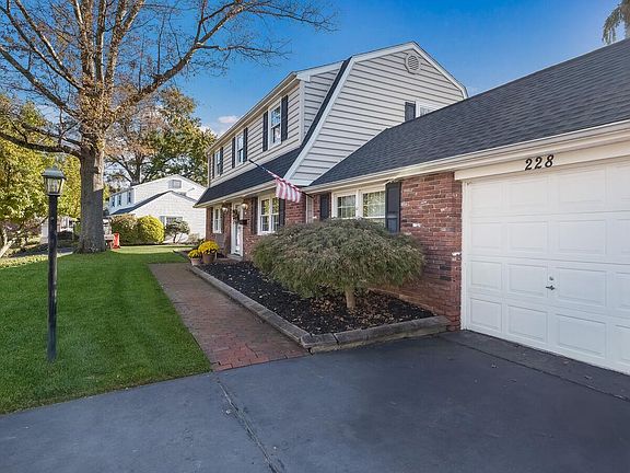 Large 2-story Colonial features beaded Colonial vinyl siding & dimensional roof. Center hall entry with custom leaded-glass front door & ceramic tile floor in entry which opens to both the formal Dining room & front to back Living room both offering hardwood floors & custom millwork. Front-to-back Living room features a deep bay window with a view of back yard. Living room opens to a large Family room with recessed lighting, custom stained plank walls & cathedral ceiling. Dining room opens to large Eat-in Kitchen with full overlay maple cabinetry, gas range & built-in dishwasher plus a separate eating room with vaulted ceiling offering Andersen casement windows & pre-finished hardwood floors. Separate powder room / Laundry room off of Kitchen. Screened-in patio. Full, unfinished Basement. Gas hot water baseboard heat & central air. 2nd floor offers large Master Bedroom with crown molding & double closet. 2 additional roomy bedrooms with custom crown molding. All bedrooms have wall-to-wall carpet over hardwood floors. Large 1+ car Garage. House needs some TLC, being sold as-is. Great opportunity,